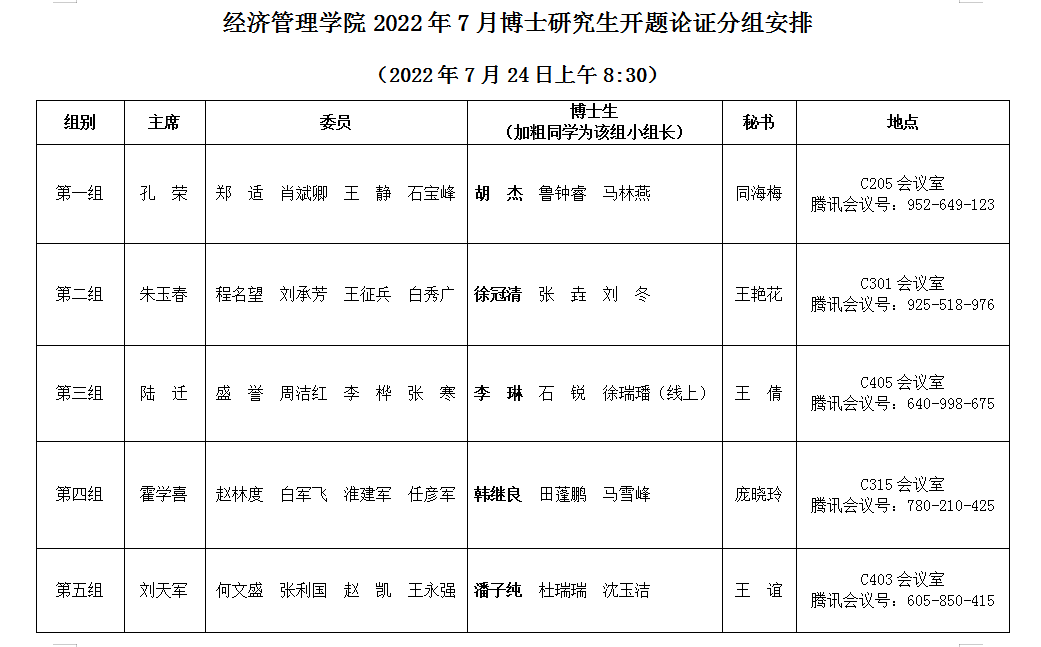 学位论文质量是研究生培养质量的重要标志,学位论文创新和突破的关键在于选题。为加强研究生培养过程管理,提高研究生培养质量和科研水平,经管学院贯彻落实学校研究生学位论文开题论证管理规定,在新冠肺炎疫情期间,邀请10名校外专家和15名校内专家,采取“线上+线下”混合互动的方式,7月24日顺利完成2022年7月博士生学位论文开题论证工作。