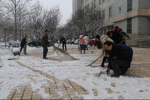 “白雪却嫌春色晚,故穿庭树作飞花”,杨凌迎来今冬的第一场大雪,西农大校园里琼枝玉叶,皓然一色,皑皑的白雪给整个西农披上了一层美丽的外衣,厚厚的积雪也给广大师生的出行带来了很大的不便。12月28日早上,为充分发挥党员的先锋模范作用,在支部书记的带领下,研究生院(研工部)支部全体党员干部拿出扫帚、铁锨和簸箕等工具踊跃参加扫雪除冰活动。
