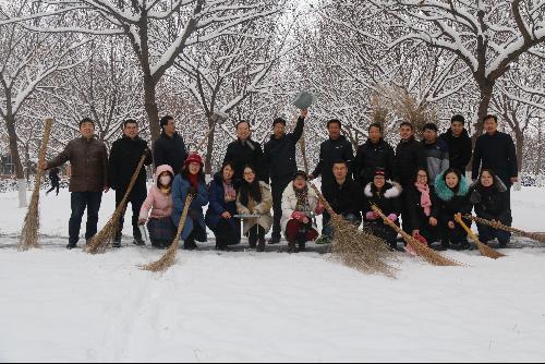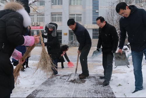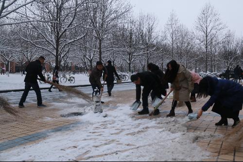 —研究生院(研工部)支部组织党员干部积极开展义务扫雪除冰活动